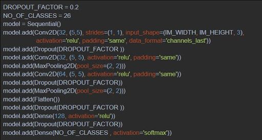 Along with the CNN layers, we used a flattening layer so that the features can be fed to a Dense classifier. In the end, a couple of dense layers with Softmax activation were used to get the probability of each class. We then selected the character class with the highest probability as the predicted label for each image.